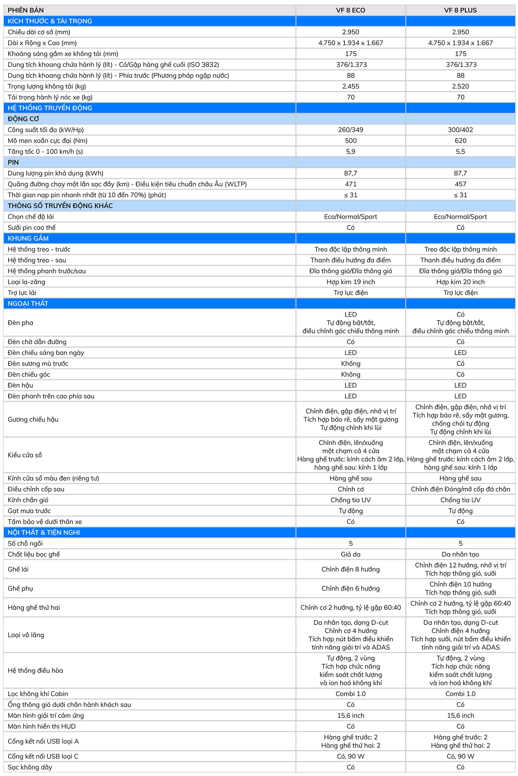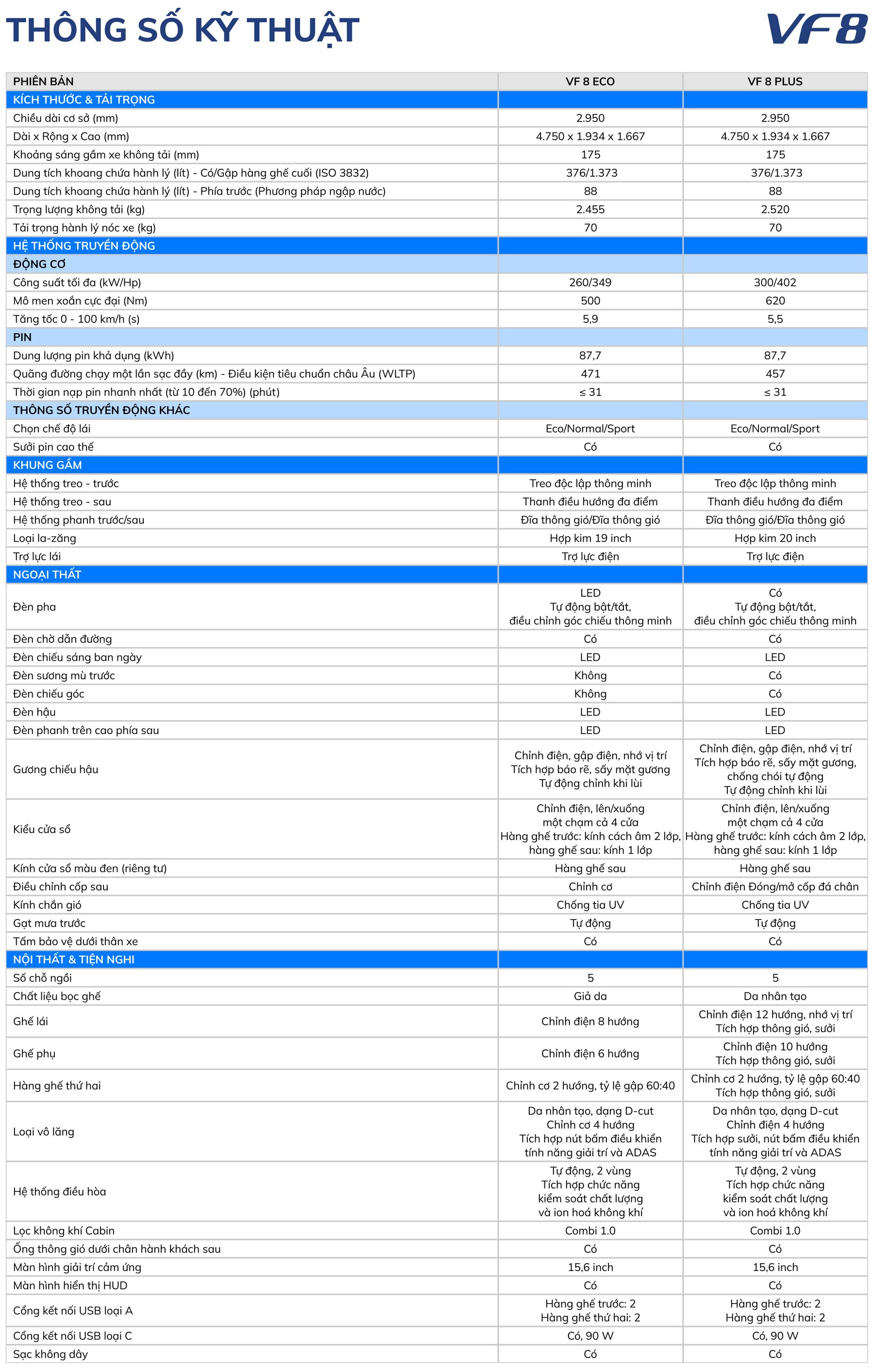 • VinFast VF 8 Plus: 1.199.000.000 VNĐ